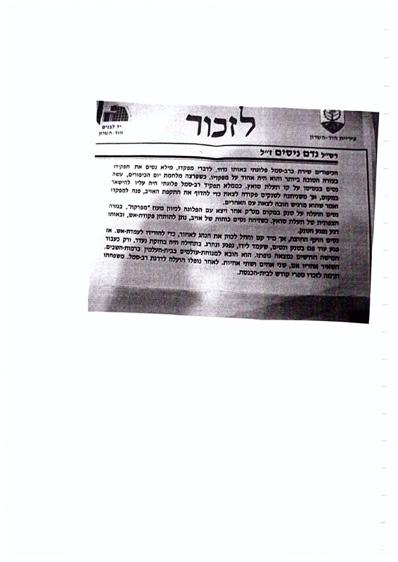 עבודת תלמידים לזכרו
