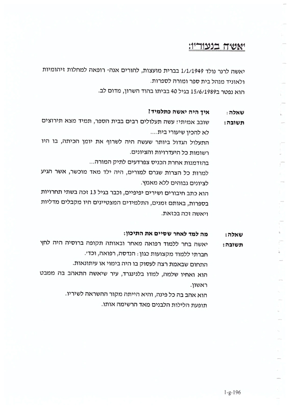 עבודת תלמידים לזכרו